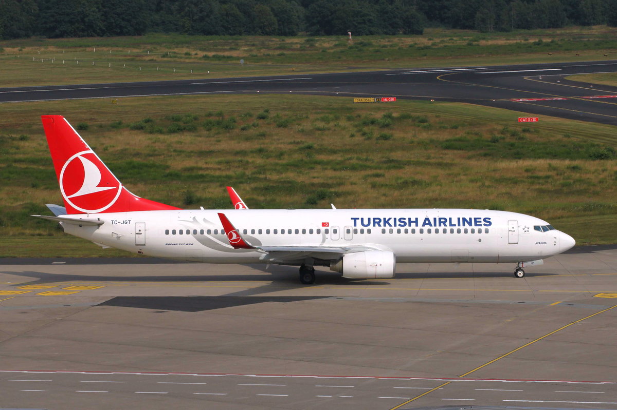 Turkish Airlines, TC-JGT, Boeing 737-8F2, CGN/EDDK, Köln-Bonn. Rollt zum Start nach Istanbul-Sabiha Gökcen (SAW), 24.07.2016
