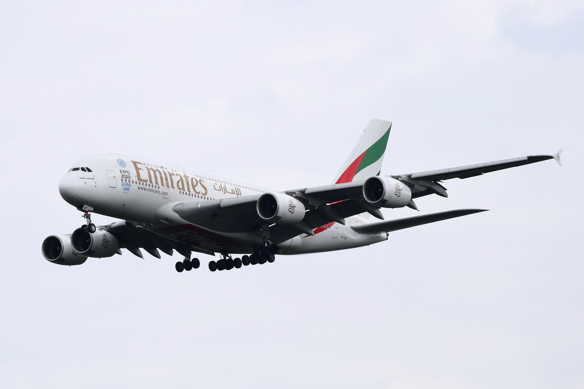 A6-EDF Emirates Airbus A380-861 am 17.05.2016 in München beim Landeanflug