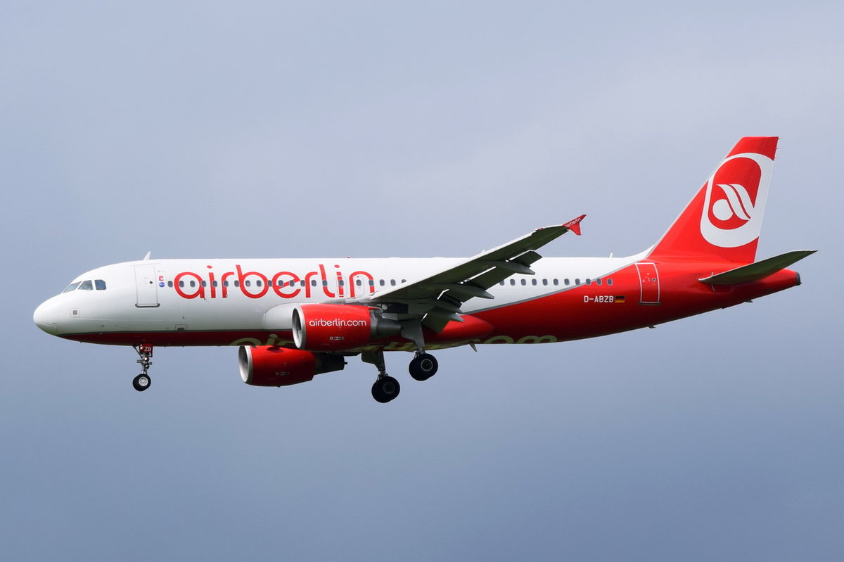 D-ABZB Air Berlin Airbus A320-216 am 16.05.2016 in München beim Landeanflug