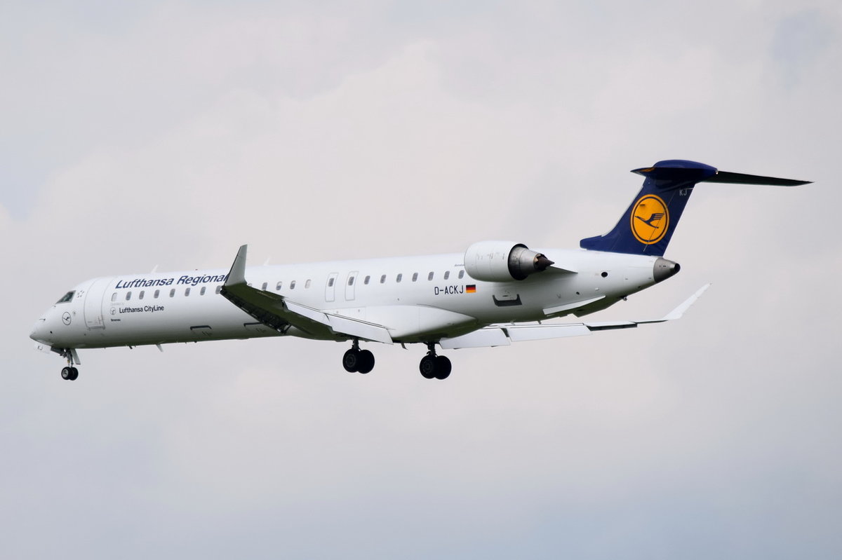 D-ACKJ Lufthansa CityLine Canadair CL-600-2D24 Regional Jet CRJ-900LR in München am 17.05.2016 beim Anflug