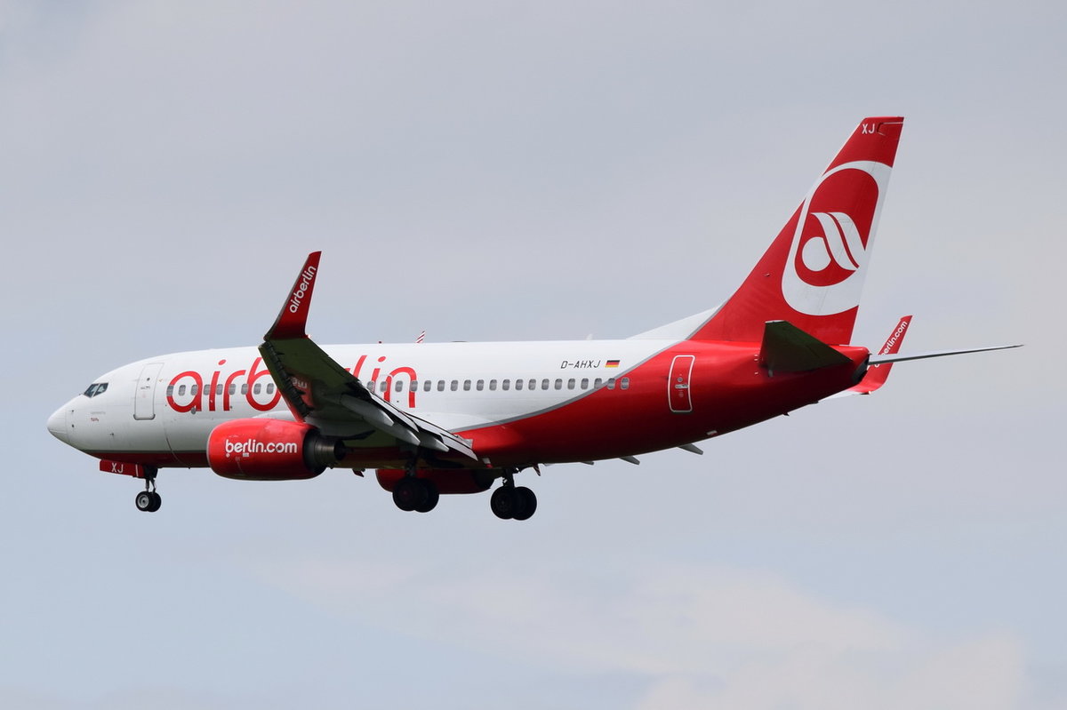 D-AHXJ Air Berlin Boeing 737-7K5(WL) in München am 17.05.2016 beim Landeanflug