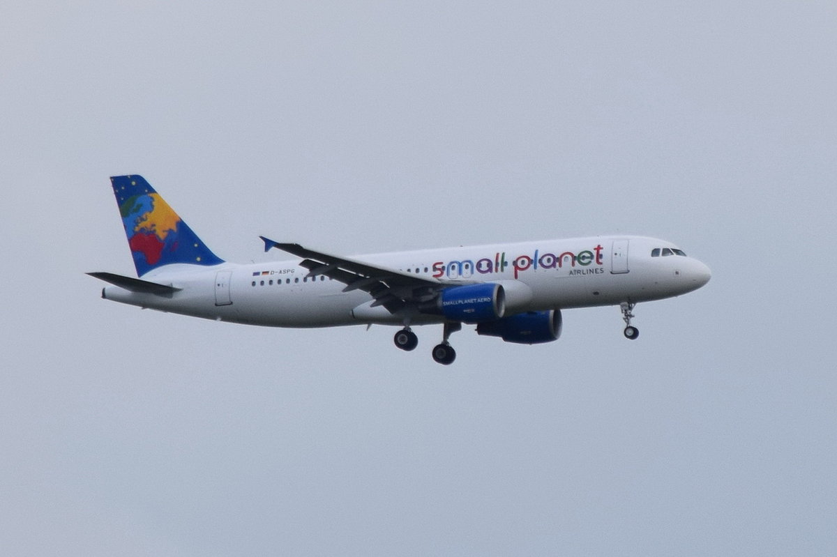 D-ASPG Small Planet Airlines Germany Airbus A320-214 Landeanflug München am 15.05.2016