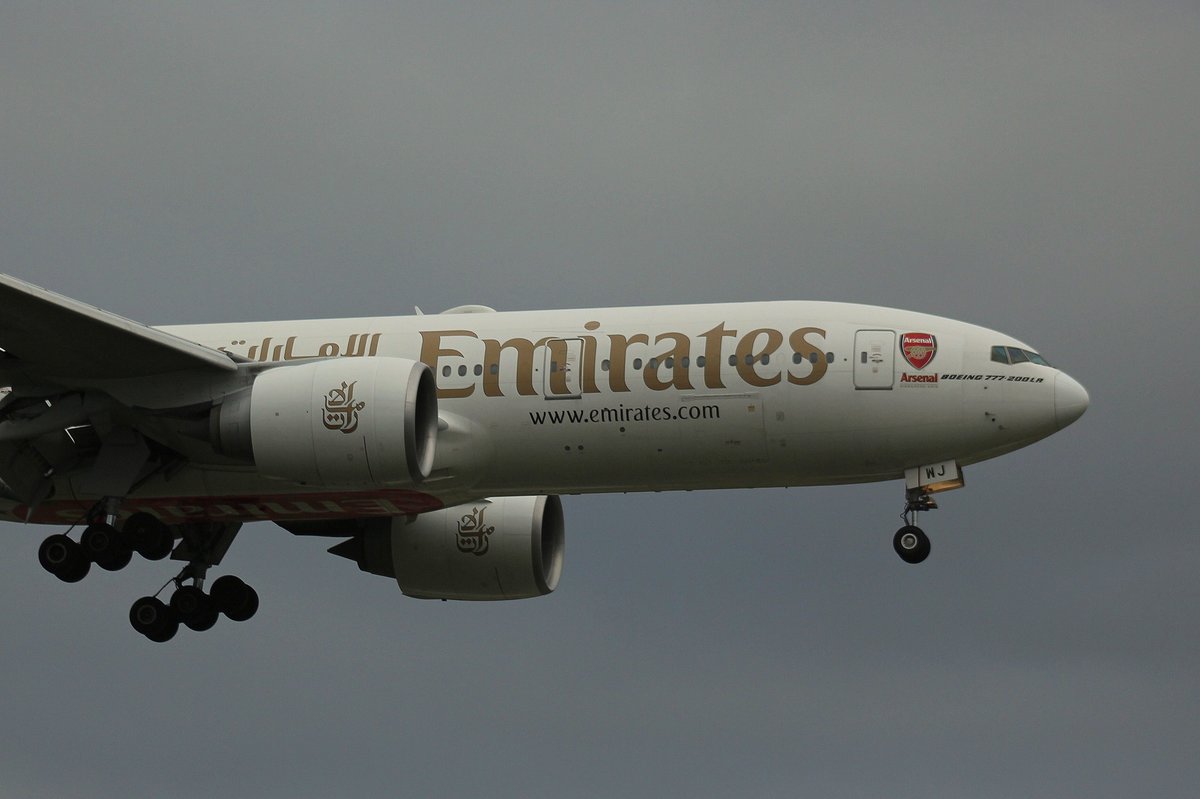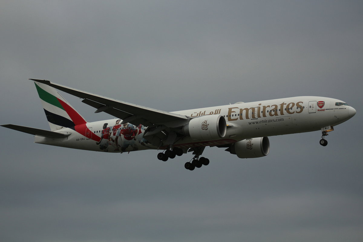 Emirates, A6-EWJ, (c/n 35590),Boeing 777-21H(LR), 09.06.2016, HAM-EDDH, Hamburg, Germany (Arsenal London livery)
