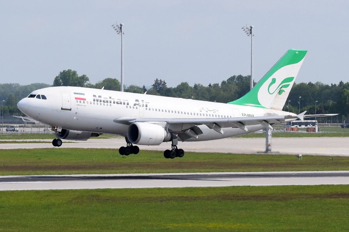EP-MNX Mahan Airlines Airbus A310-304 bei der Landung am 15.05.2016 in München