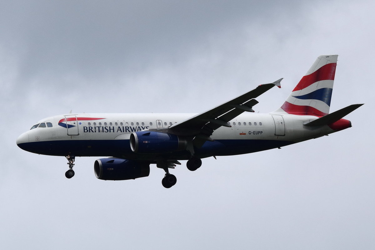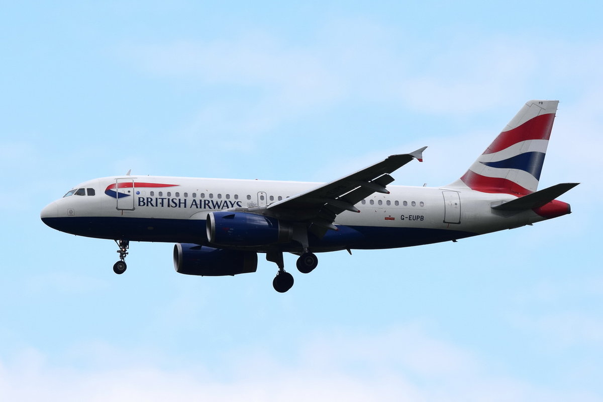 G-EUPB British Airways Airbus A319-131 in München am 15.05.2016 beim Landeanflug