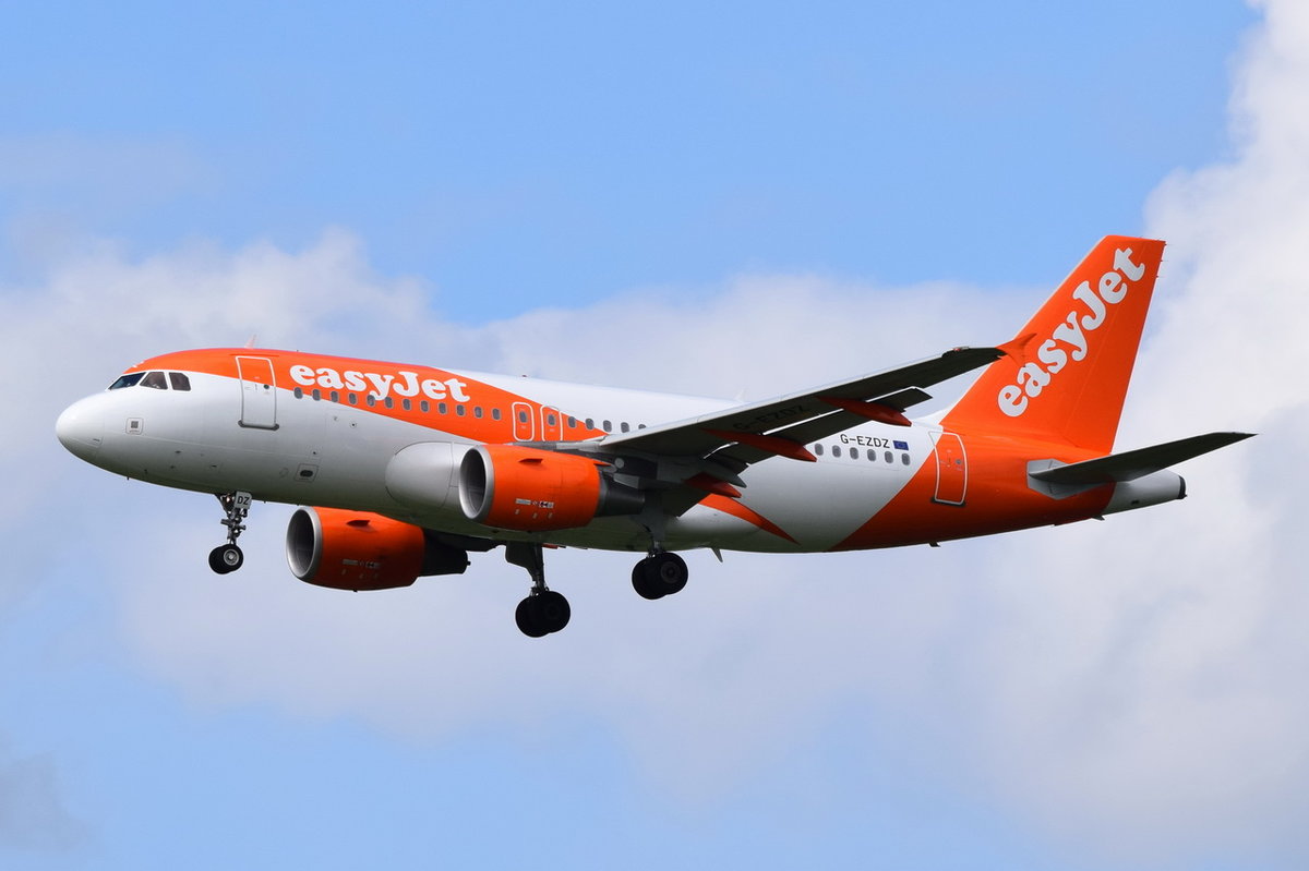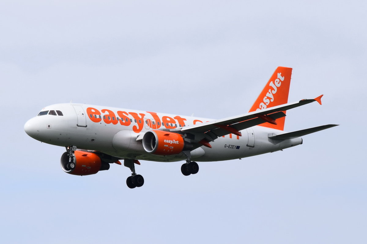 G-EZDZ easyJet Airbus A319-111 in München beim Landeanflug am 15.05.2016