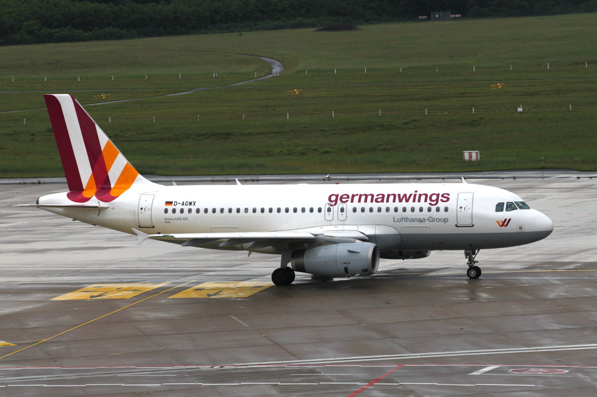 Germanwings, D-AGWX, Airbus A319-132, CGN/EDDK, Köln-Bonn. Rollt zum Start nach Hamburg (HAM), 02.06.2016