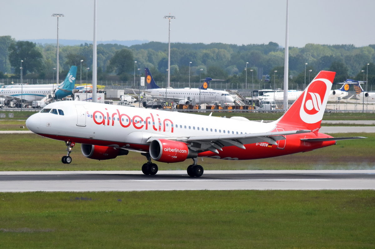 D-ABDW Air Berlin Airbus A320-214 in München am 20.05.2016 bei der Landung