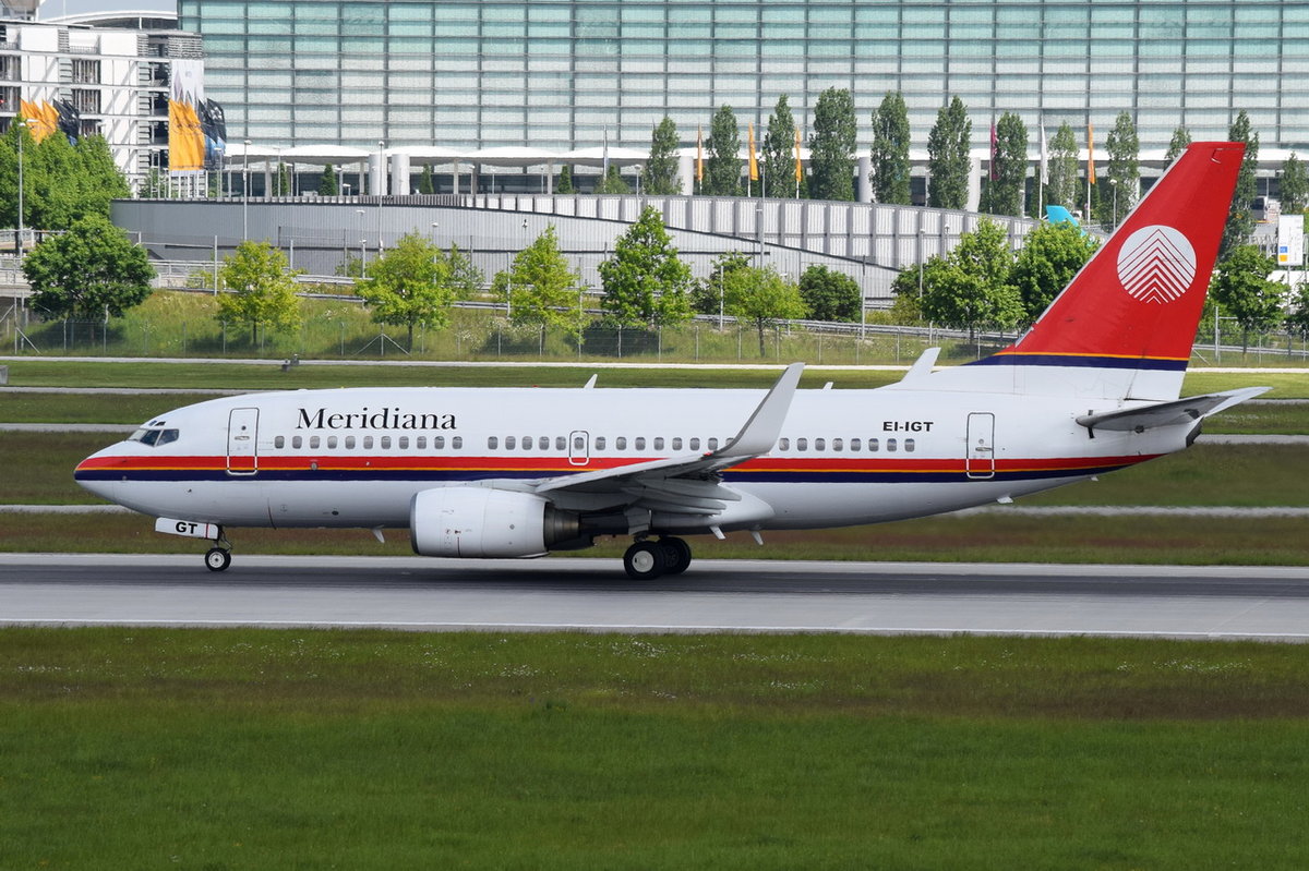EI-IGT Meridiana Boeing 737-73V(WL) in München am 20.05.2016 beim Start