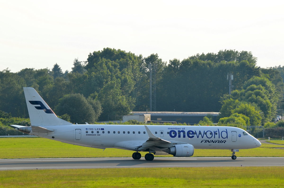 Finnair Embraer 190 OH-LKN (member of one World Sticker) beim Start in Hamburg Fuhlsbüttel am 22.06.16