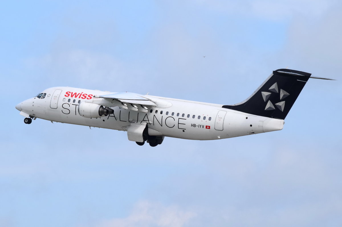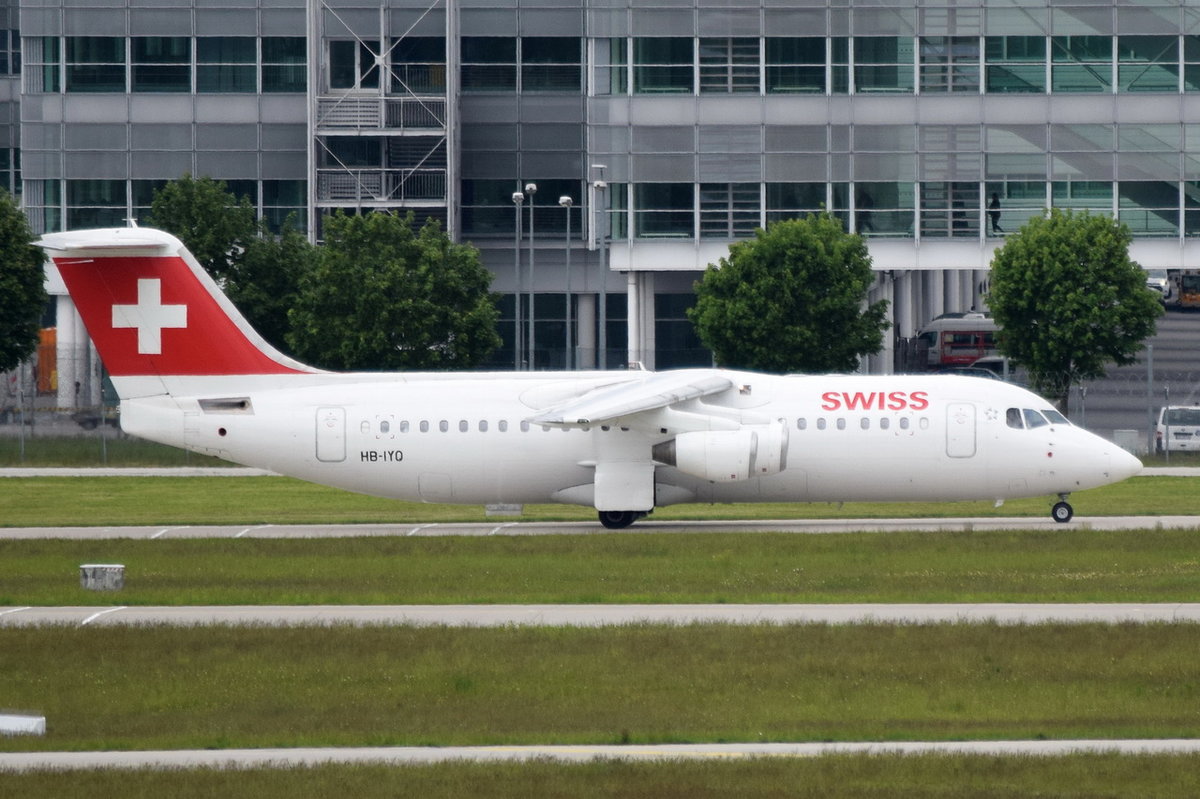 HB-IYV Swiss British Aerospace Avro RJ100 in München am 20.05.2016 gestartet