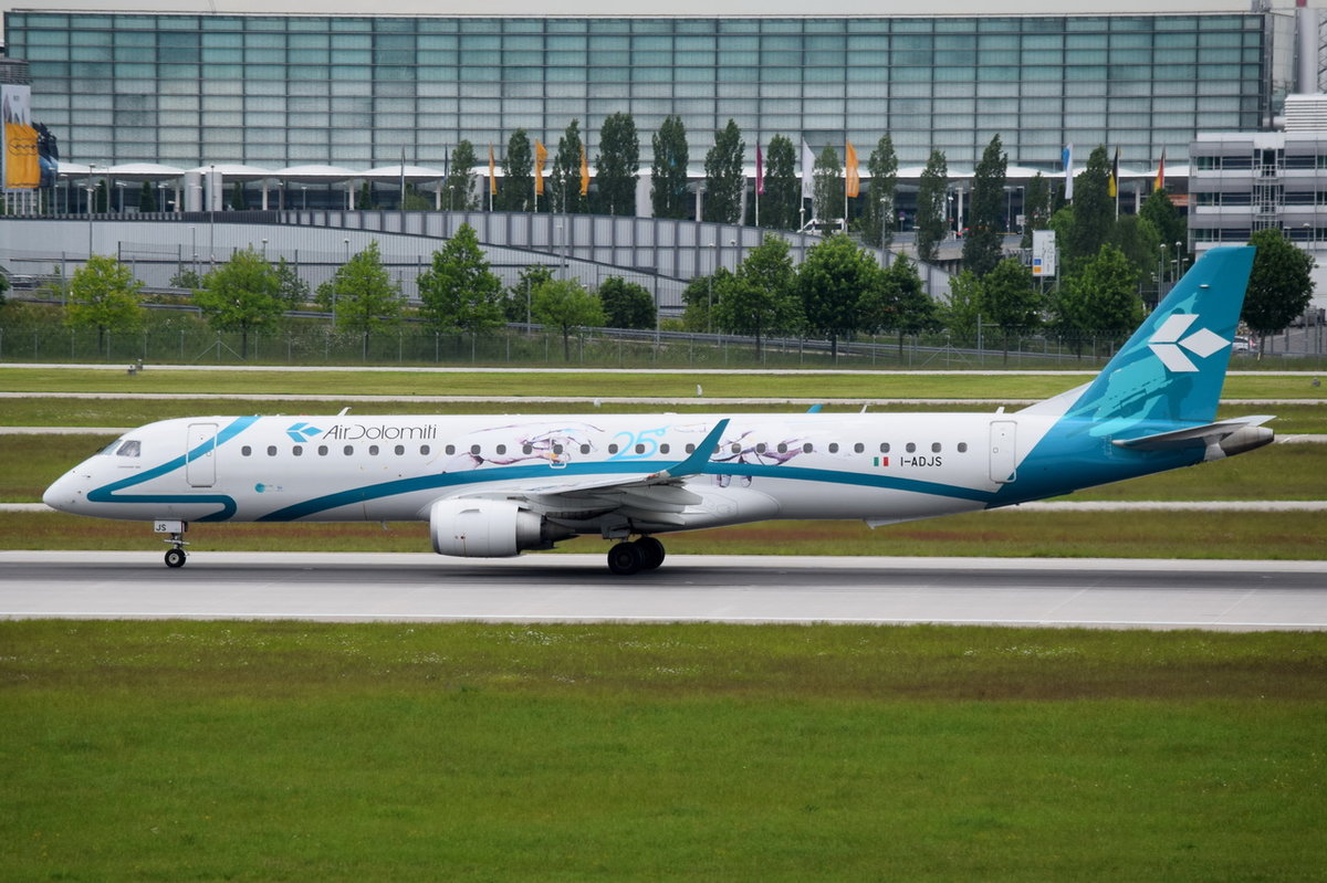 I-ADJS Air Dolomiti Embraer ERJ-195LR (ERJ-190-200 LR) beim Start in München am 20.05.2016