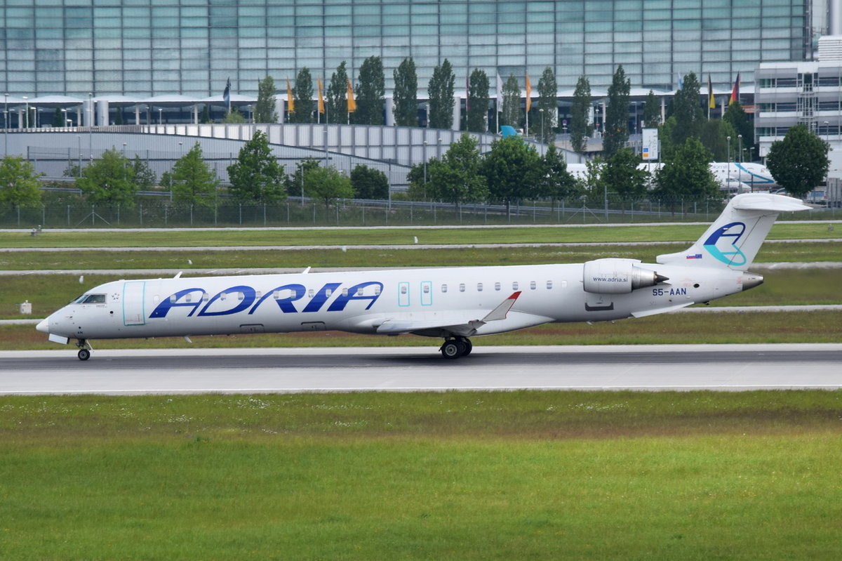 S5-AAN Adria Airways Canadair CL-600-2D24 Regional Jet CRJ-900LR beim Start in München am 20.05.2016