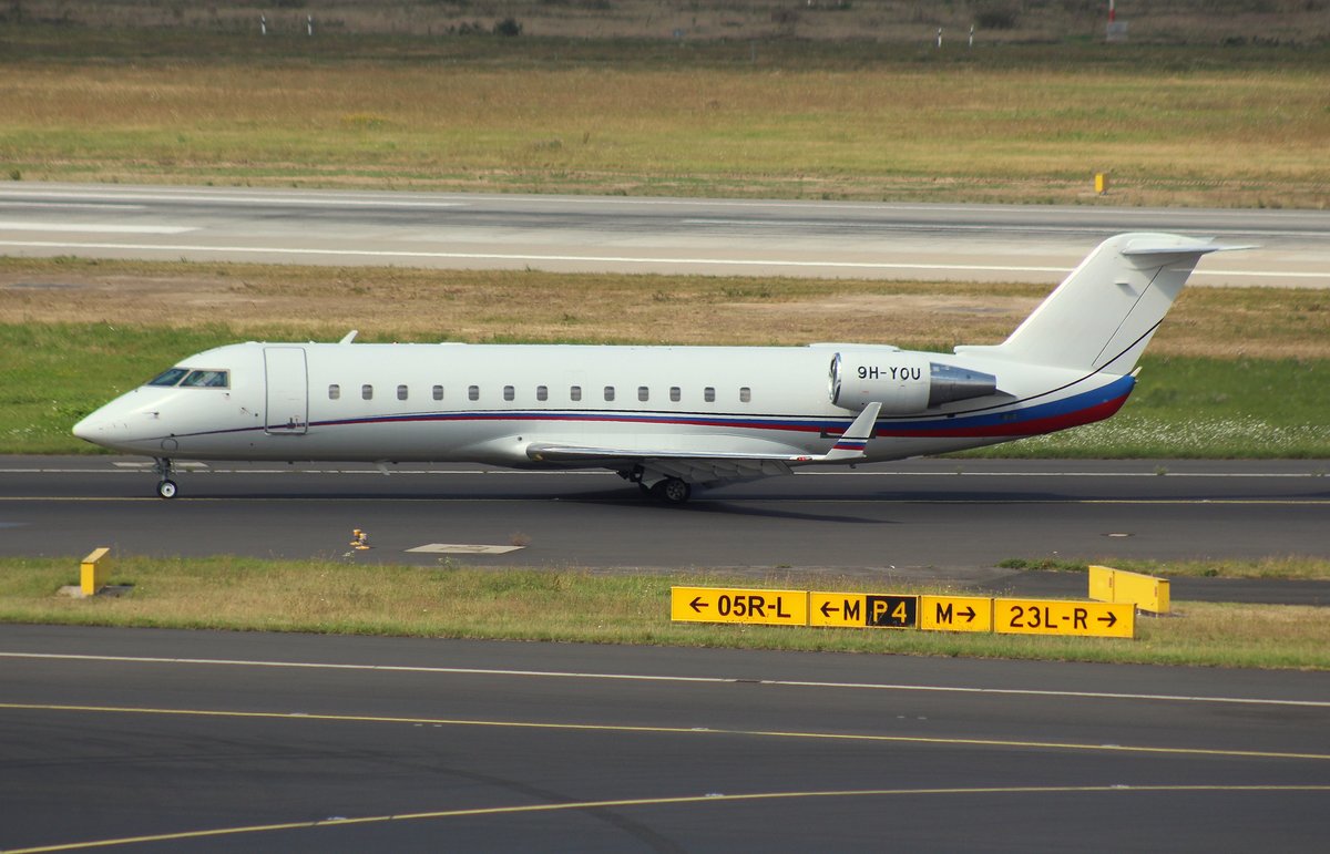 AIR X Charter Canadair CL-600-2B19 Challenger 850 9H-YOU am 28.08.2016 in Düsseldorf.