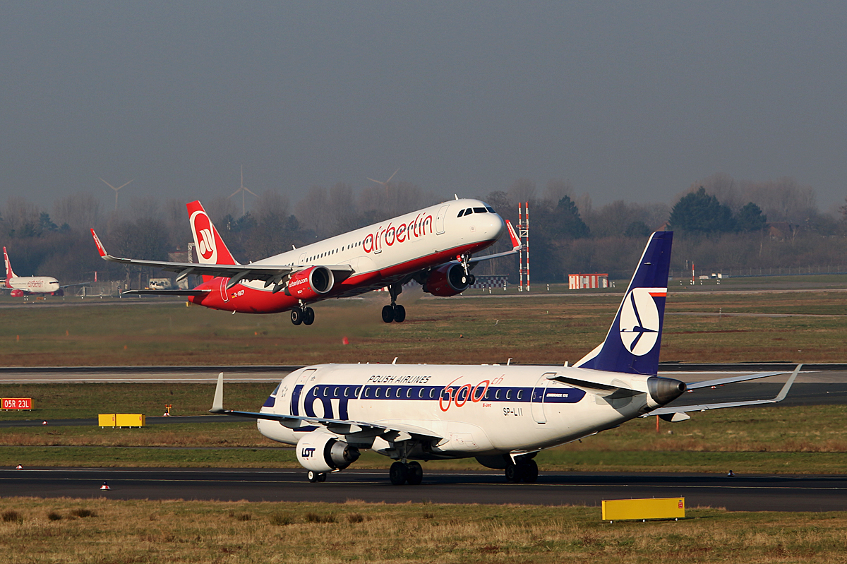 LOT, ERJ-175-200STD, SP-LII, Air Berlin. Airbus A 321-211, D-ABCP, DUS, 10.03.2016