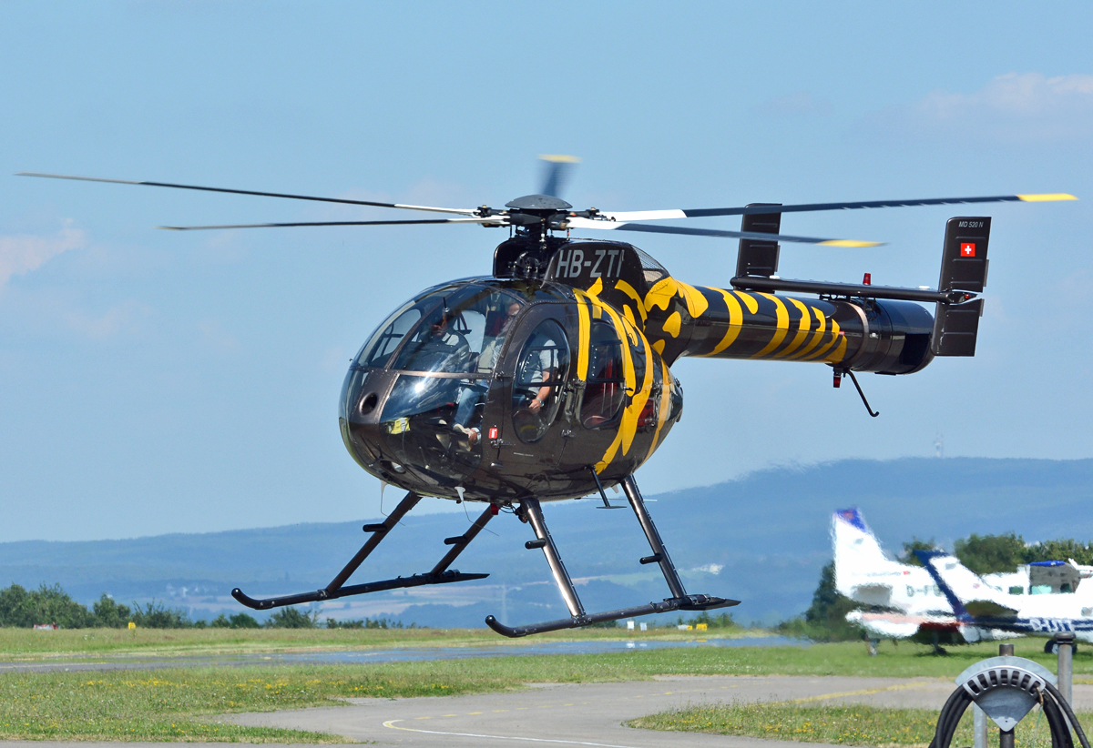 MD 520 N, HB-ZTI, hovert bei der Tankstelle in EDRK - 19.07.2016