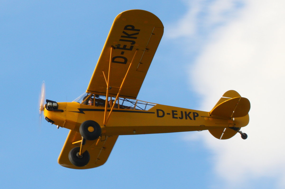 Piper J3C (L-4) Cub des LSV Radevormwald, D-EJKP, Baujahr 1944. Gesehen in Wershofen/Eifel (EDRV), 03.09.2016