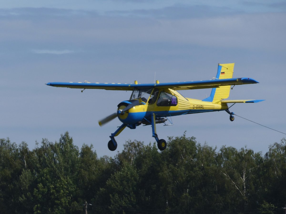 PZL 104 Wilga 35, D-EWRL (ex.DDR-WRL) war als Schleppschaschine bei den 23. Deutschen Meisterschaften im Segelkunstflug am Flugplatz Gera (EDAJ) vom 15.8.-27.8.2016 im Einsatz