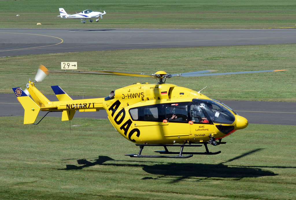 EC 145 D-HWVS ADAC und im Hintergrund Aquila A 210 beim Start in EDKB - 20.04.2016