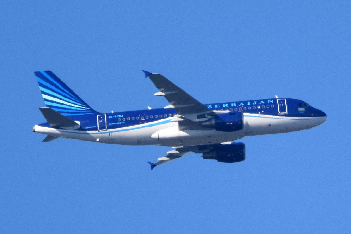 4K-AZ03 AZAL Azerbaijan Airlines Airbus A319-111 beim Anflug auf Tegel am 18.09.2016 über Potsdam