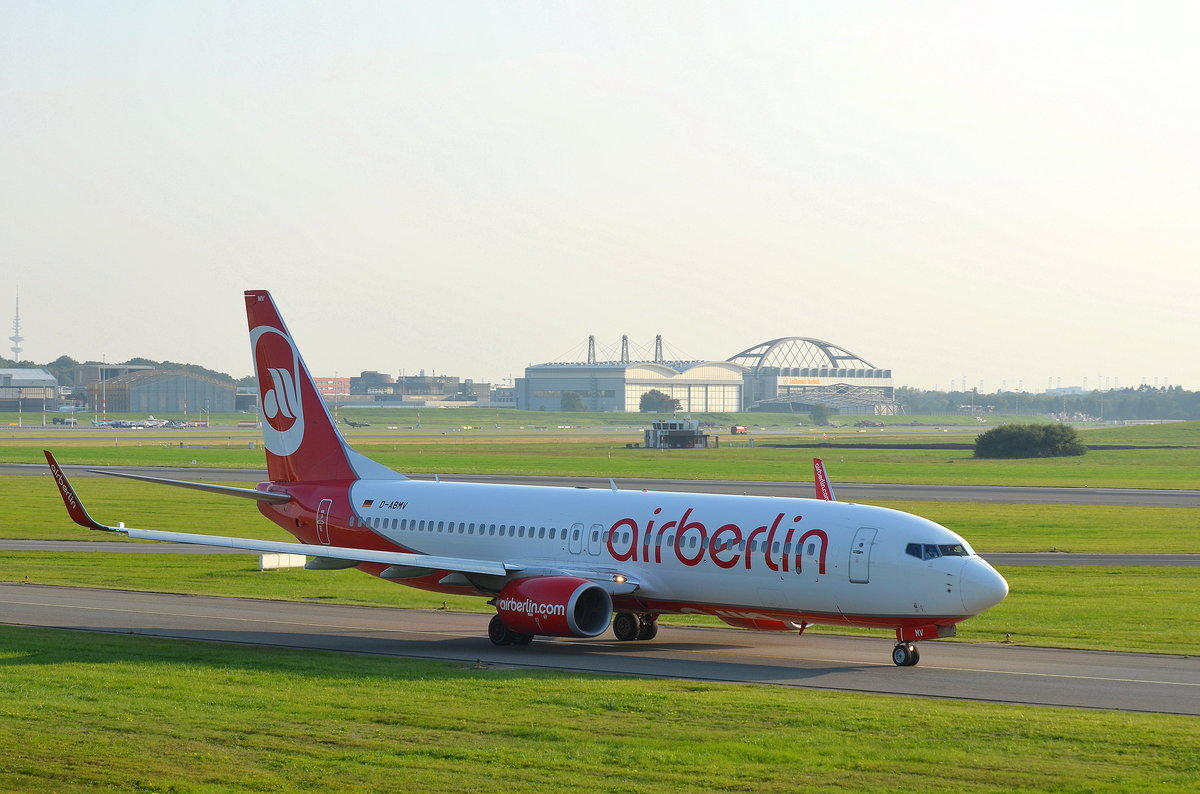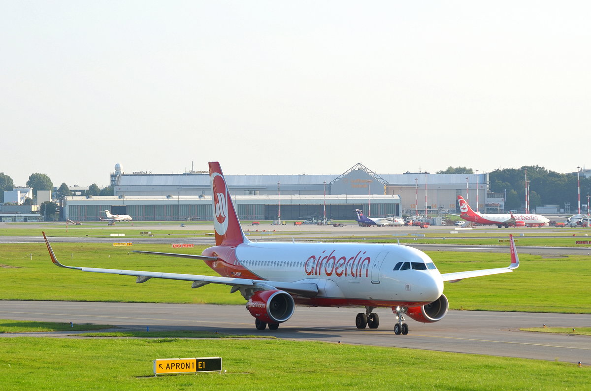 Air Berlin Airbus A320 D-ABNY rollt in Hamburg Fuhlsbüttel zum Start aufgenommen am 14.09.16