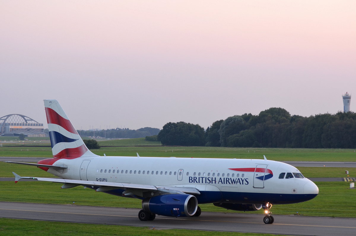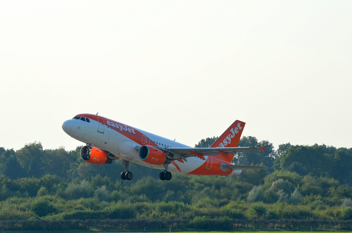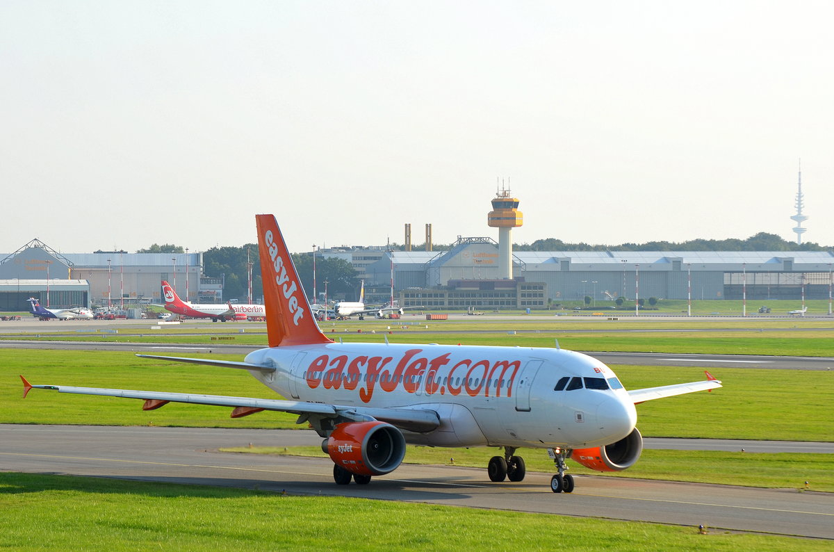 Der Airbus A319 G-EZBU von Easyjet beim rollen zum Start in Hamburg Fuhlsbüttel am 14.09.16