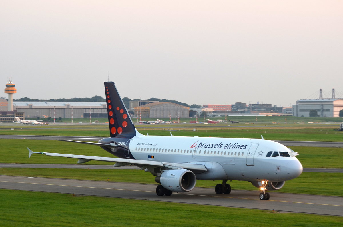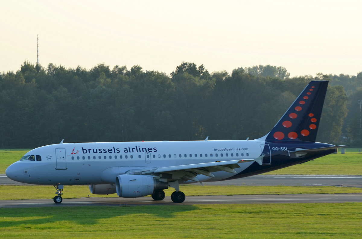 Brussels Airlines Airbus A319 OO-SSL am 14.09.16 beim rollen zum Start in Hamburg Fuhlsbüttel.
