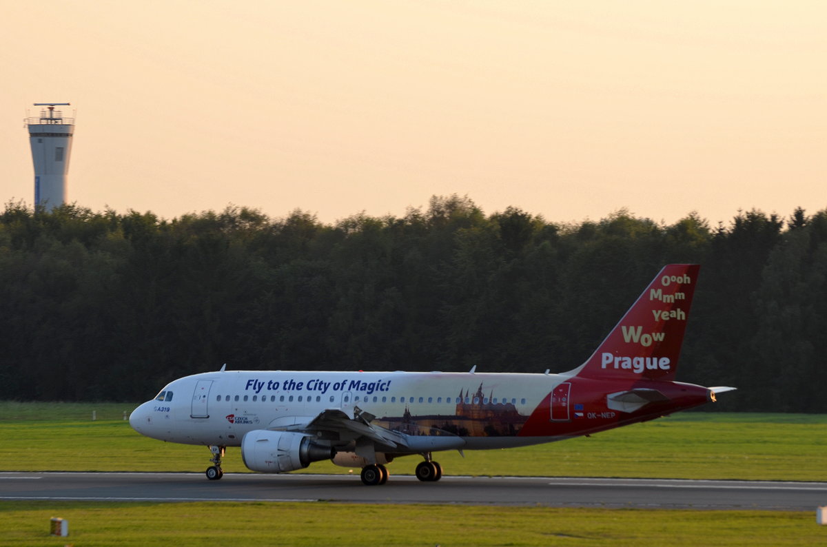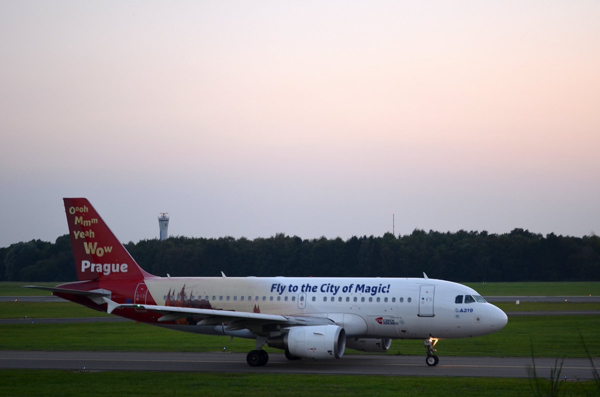 Czech Airlines Airbus A319 OK-NEP (Fly to the City of Magic!) beim rollen zum Start in Hamburg Fuhlsbüttel am 14.09.16