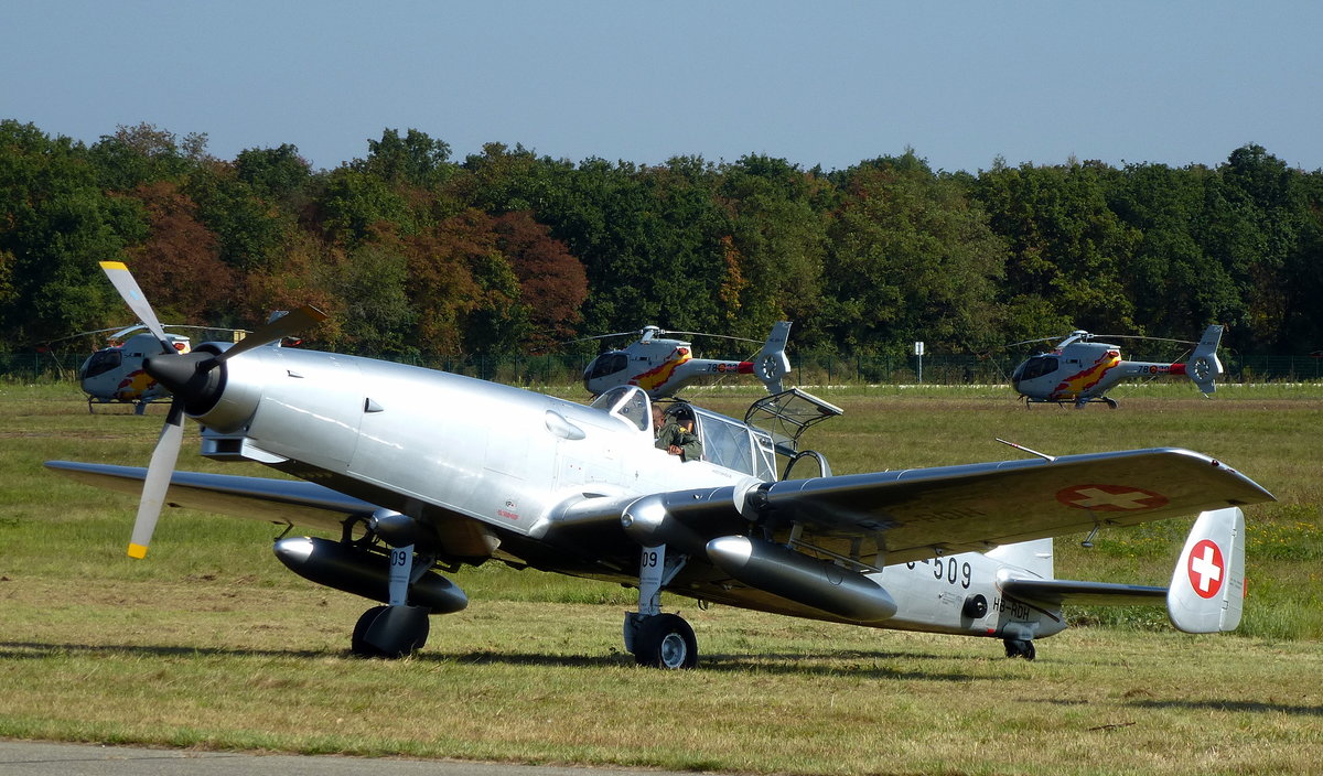 Pilatus P2, F-AZCC, rollt nach Flugvorführung zum Stellplatz, Flugschau Habsheim/Elsaß, Sept.2016