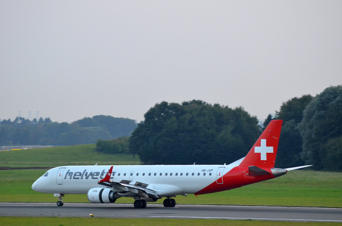 Helvetic Airways Embraer 190-100LR HB-JVP am 14.09.16 nach der Landung in Hamburg Fuhlsbüttel.
