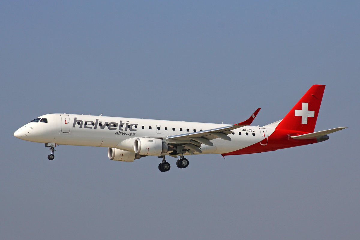 Helvetic Airways, HB-JVQ, Embraer Emb-190LR, 31.August 2016, ZRH Zürich, Switzerland.