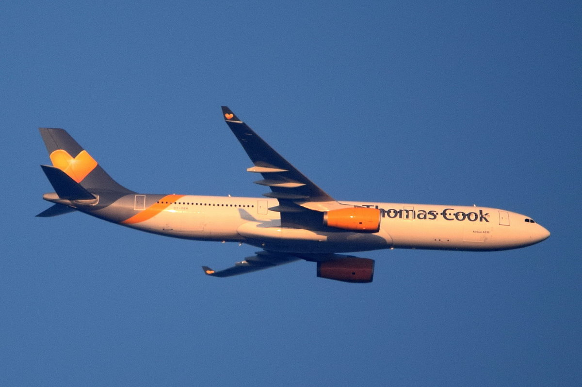 OY-VKH Thomas Cook Airlines Scandinavia Airbus A330-343 am 10.09.2016 über Potsdam beim Anflug auf Schönefeld
