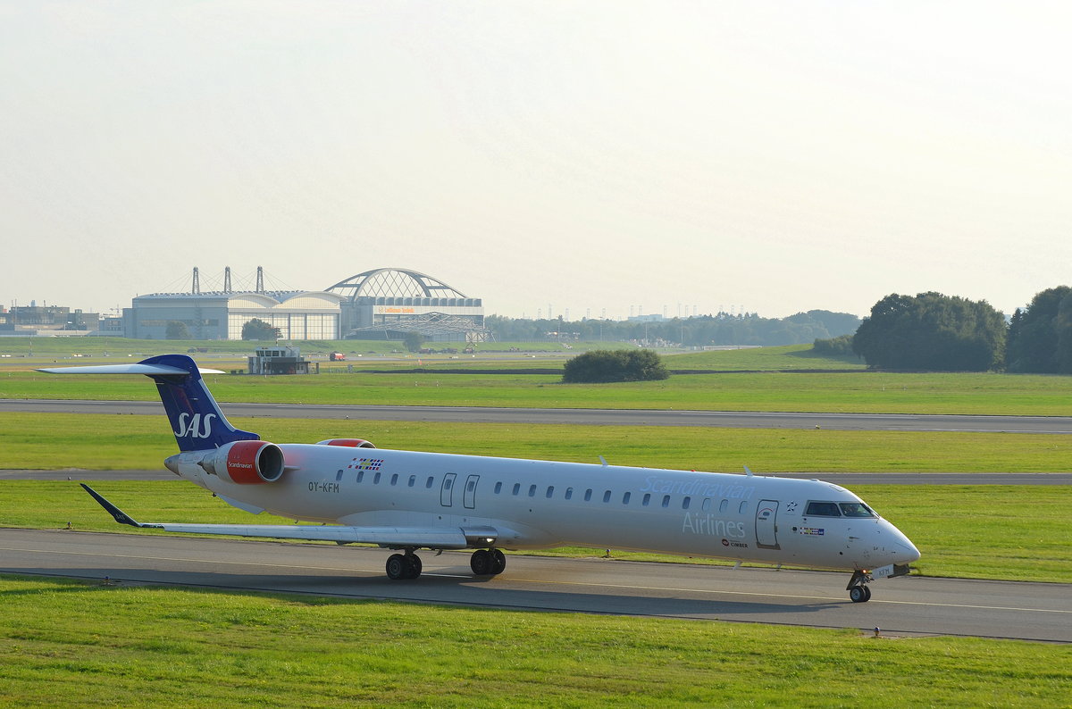 SAS Scandinavian Airlines Canadair Regional Jet CRJ-900EROY-KFM beim rollen zum Start in Hamburg Fuhlsbüttel am 14.09.16