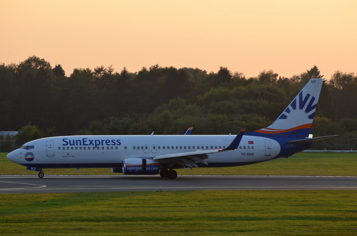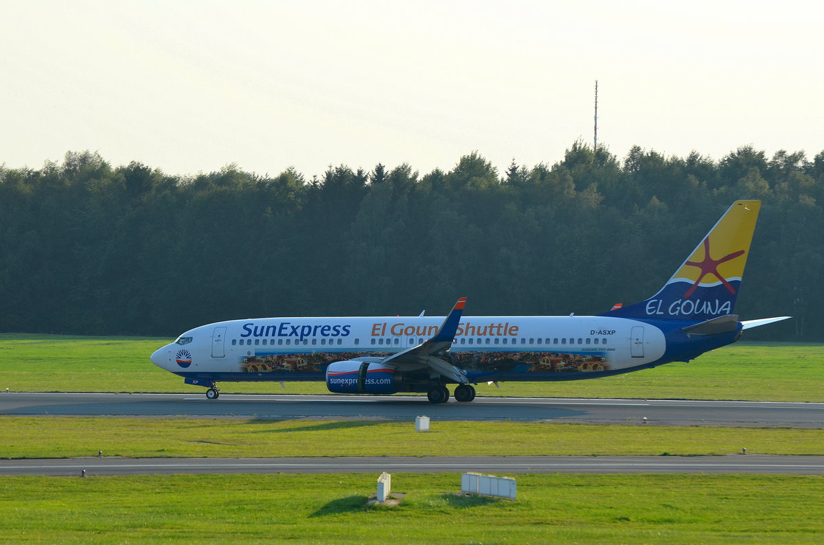 SunExpress Germany Boeing 737-800 D-ASXP (El Gouna Shuttle) bei der Landung in Hamburg Fuhlsbüttel am 14.09.16