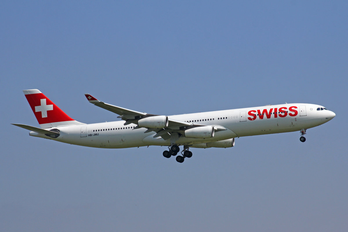 SWISS International Air Lines, HB-JMJ, Airbus A340-313X, "Zug", 31.August 2016, ZRH Zürich, Switzerland.