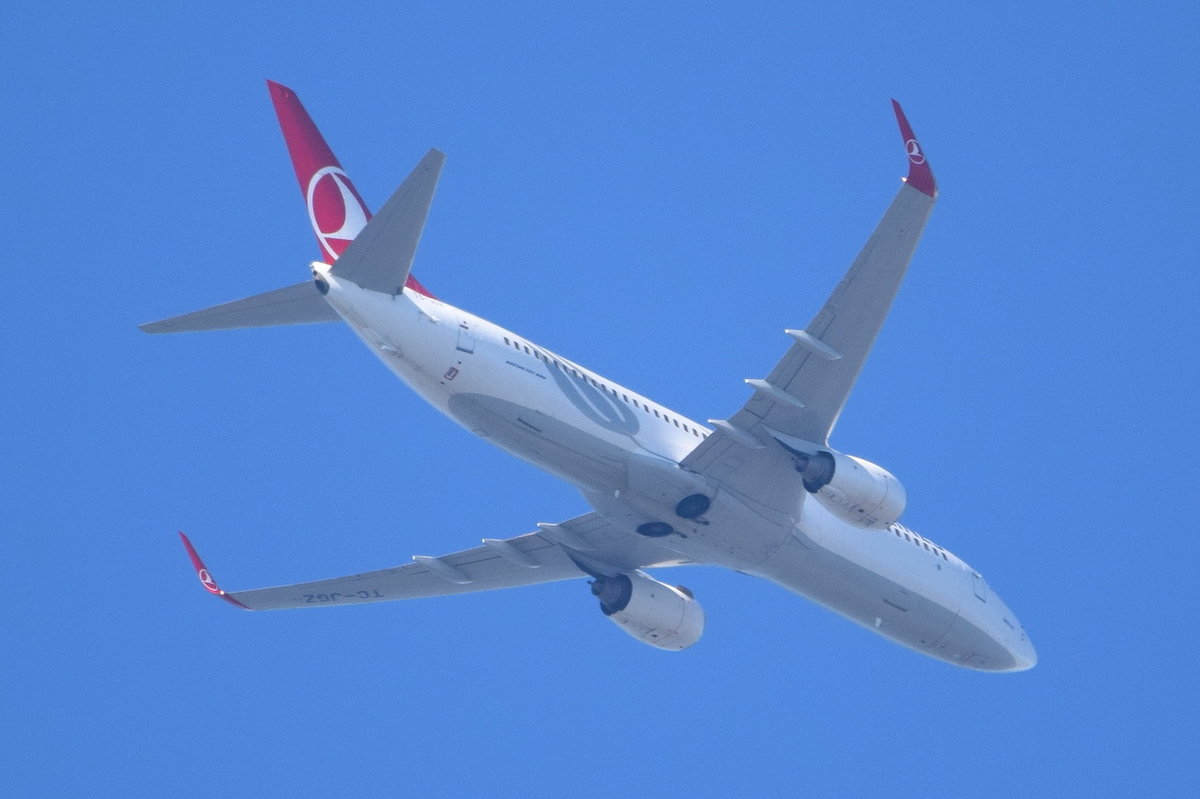 TC-JGZ Turkish Airlines Boeing 737-8F2(WL) über Potsdam am 15.09.2016 in Richtung Tegel