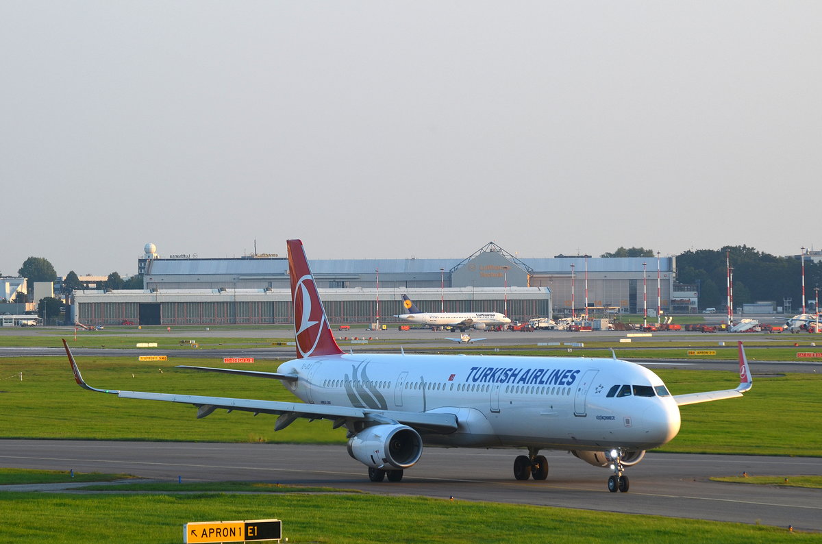 Turkish Airlines Airbus A321 TC-JTJ Kücükcekmece(Kücükcekmece ist die Hauptstadt des gleichnamigen Landkreises der türkischen Provinz Istanbul sowie ein Stadtteil auf der europäischen Seite von Istanbul) rollt am 14.09.16 in Hamburg Fuhlsbüttel zum Start.