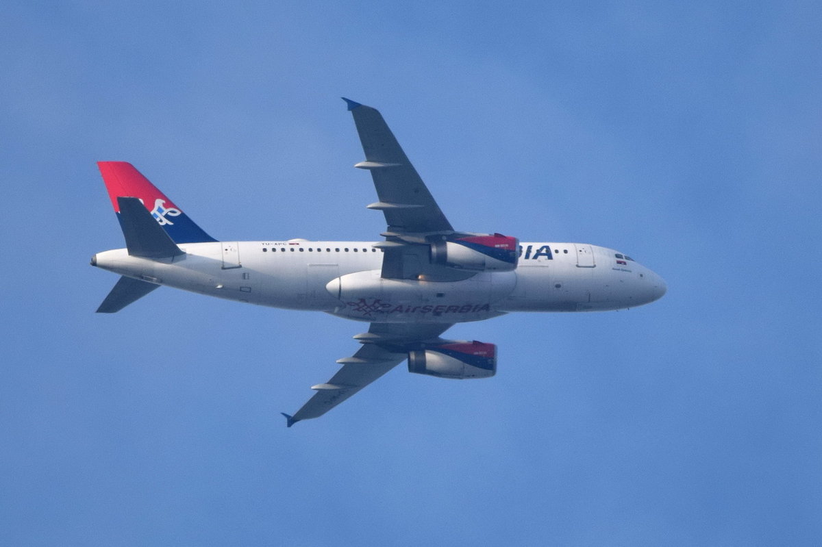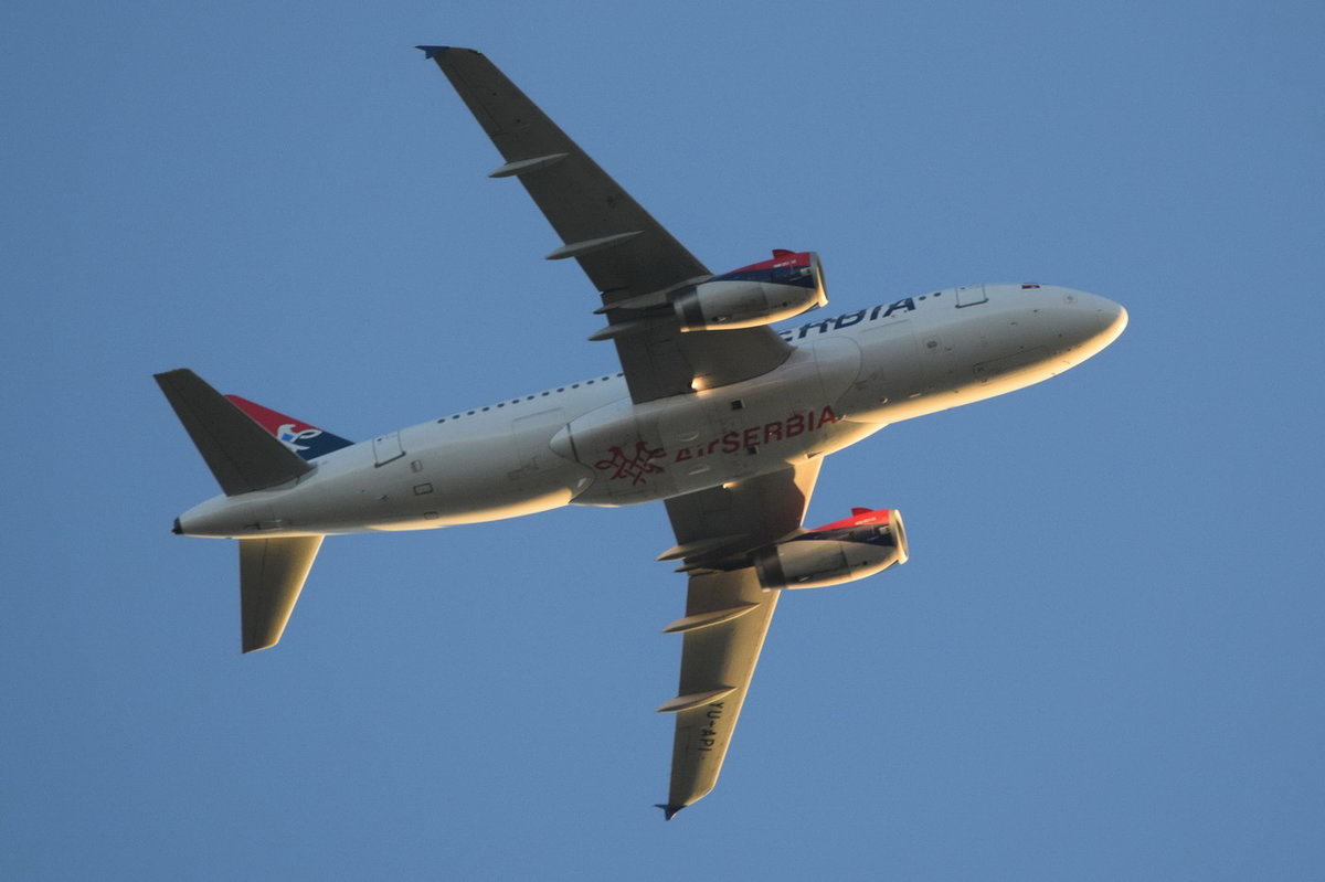 YU-API Air Serbia Airbus A319-132 über Potsdam beim Anflug auf Tegel 24.08.2016