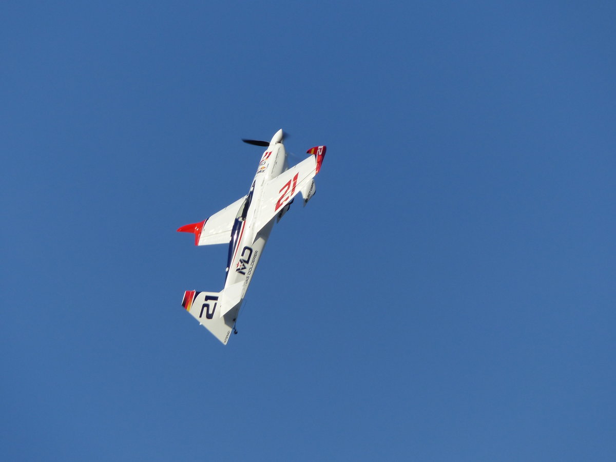 Zivko EDGE 540 V3, N72MD, Startnummer 21, Matthias Dolderer beim RED BULL AIR RACE auf dem Lausitzring am 3.9.2016. Mit Platz 2 behauptete er die Gesammtführung in der Rennserie. Am 1.Oktoberwochenende siegte er dann in Indianapolis (USA) und wurde Weltmeister 2016.