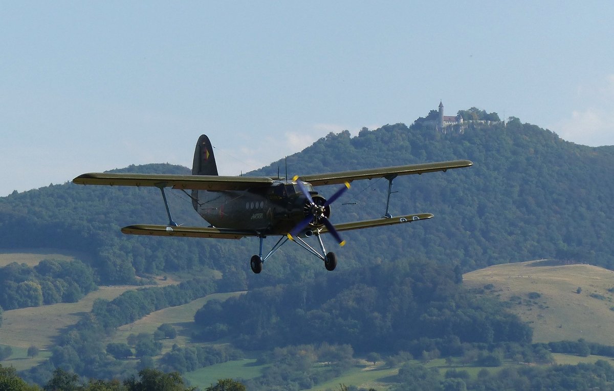 Antonow AN2, D-FUKM im Endanflug auf die Hahnweide (EDST) am 10.9.2016. Im Hintergrund die Teck.