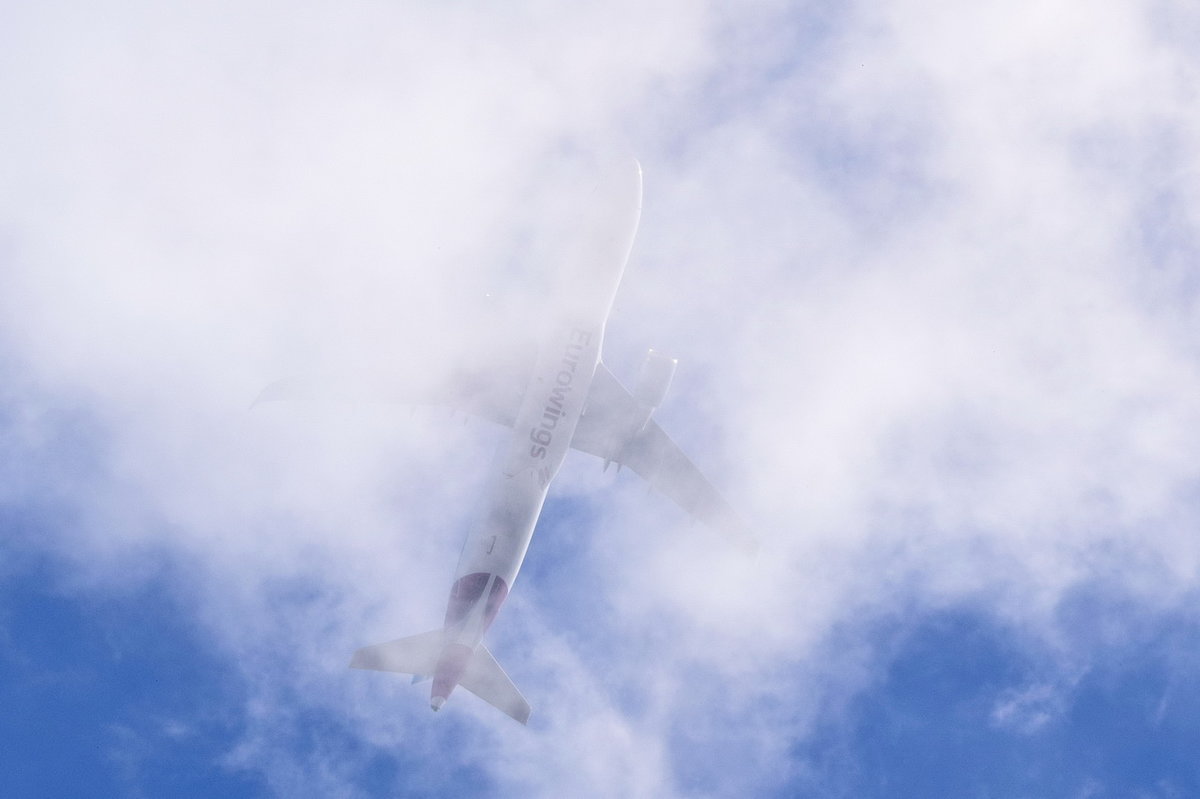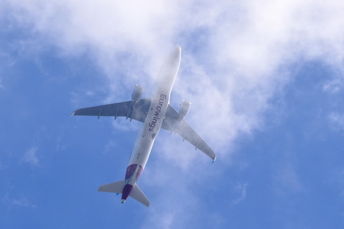 D-AEWJ Eurowings Airbus A320-214(WL) am 24.09.2016 von Tegel nach Düsseldorf in den Wolken verschwunden