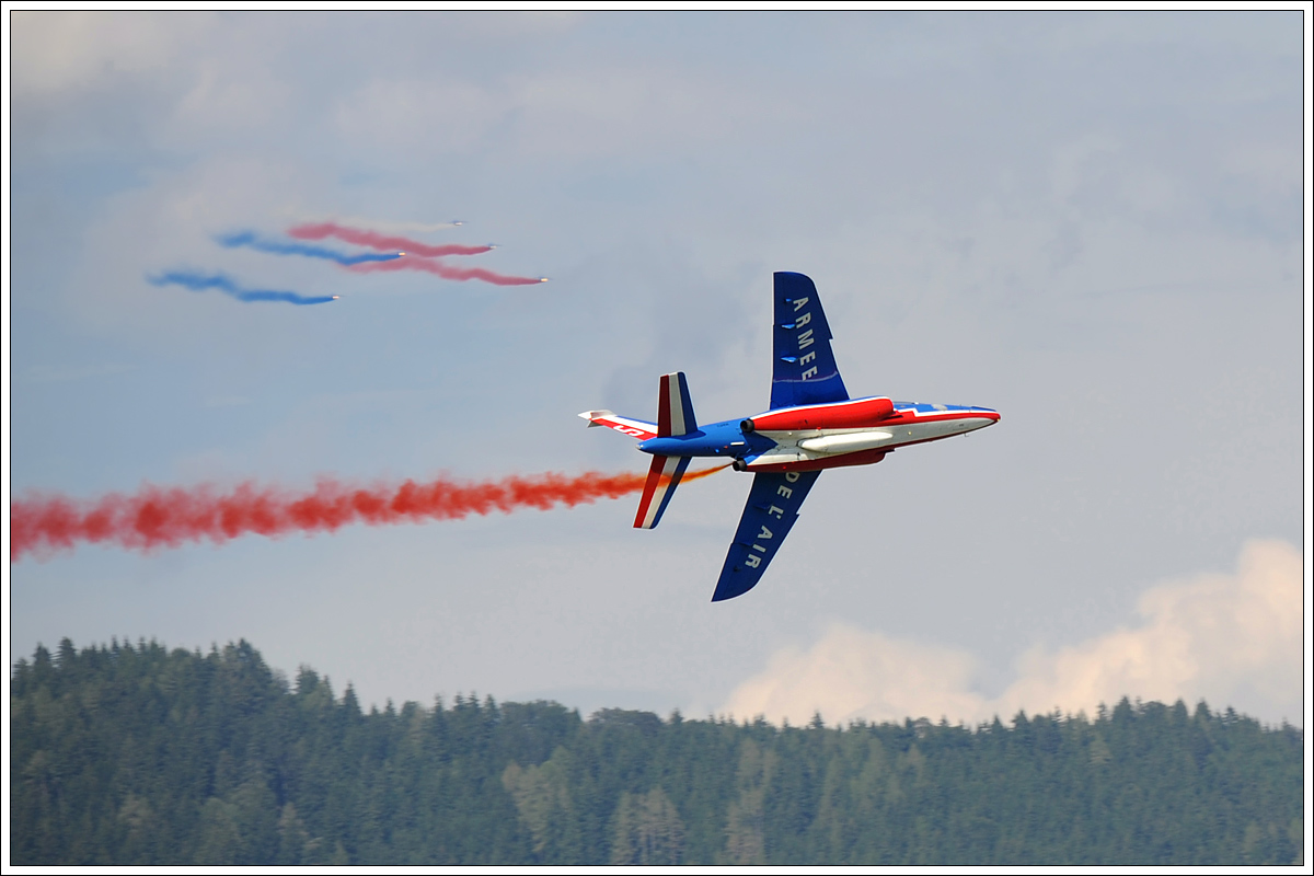 Einer der beiden Solisten der Patrouille de France bereitet sich mit seinem Alpha Jet auf die Flugfigur "Tunnel" vor. Airpower16 in Zeltweg am 3.9.2016.