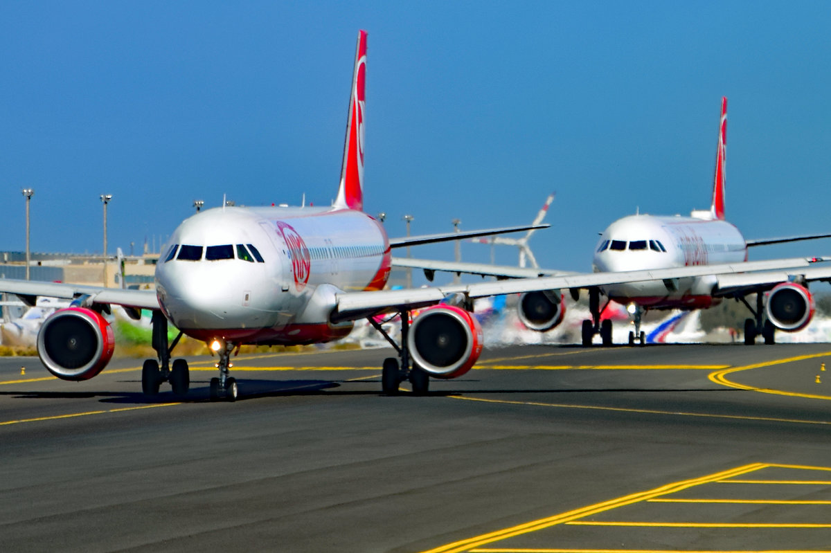 Airbus 320-214 "D-ABHH" wenige Meter vor Erreichen der zugeteilten Startbahn. Flughafen Las Palmas (LPA), Aufnahme vom 12.02.2017