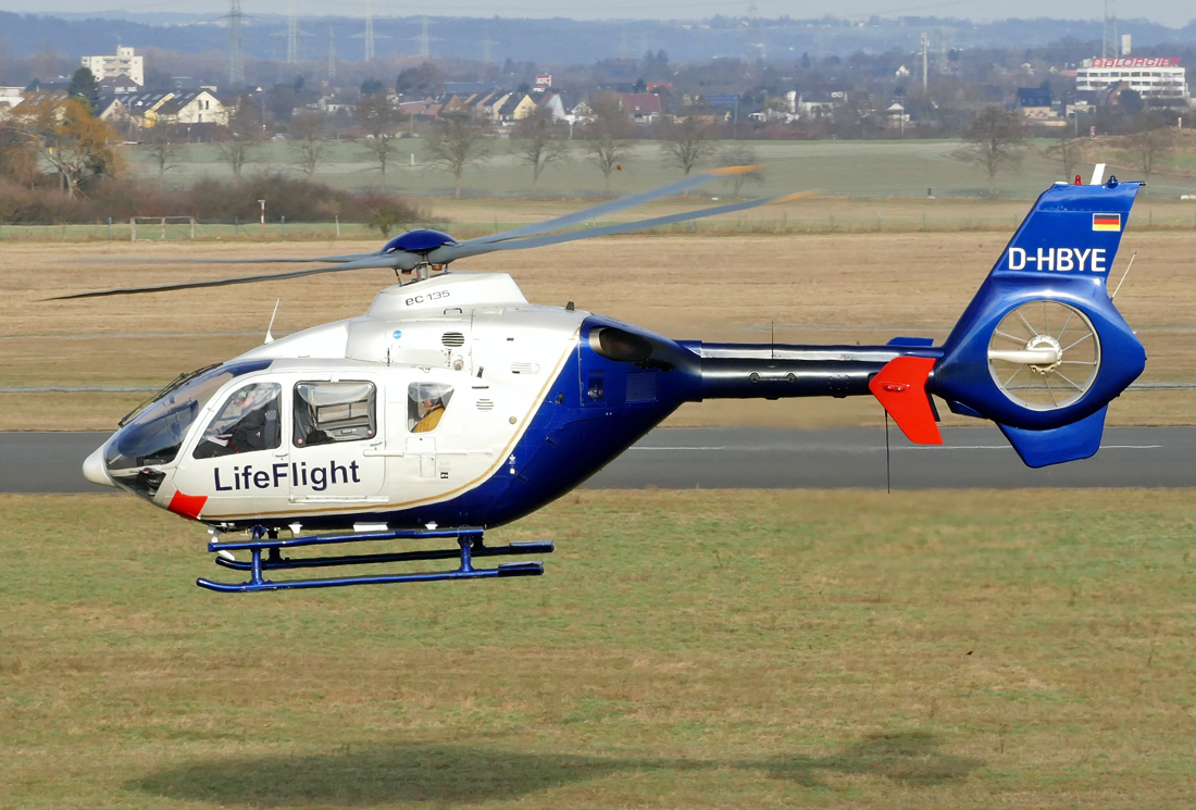 EC 135P-2 der FA. Life-Flight, D-HBYE, startet von EDKB - 18.01.2017