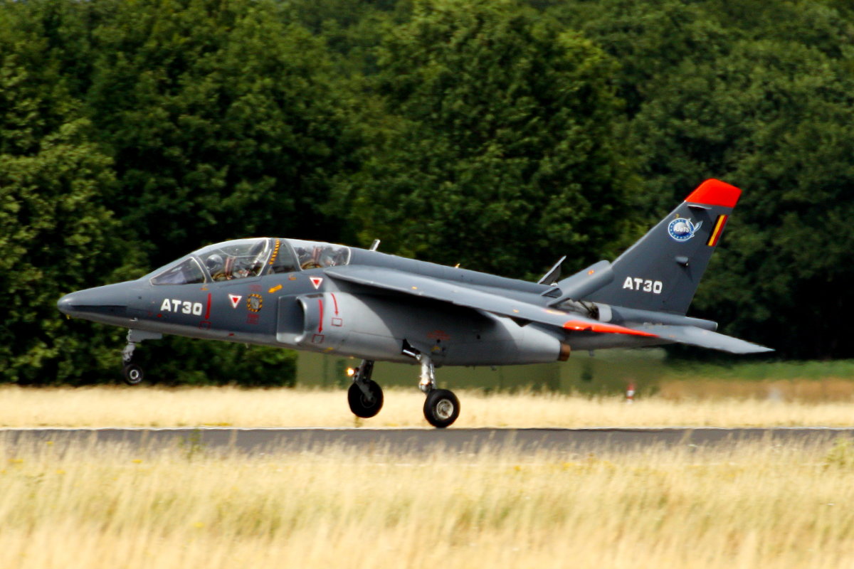 Alpha Jet der Belgian Defence - Air Component (BDAC), AT 30 bei der Landung auf der NATO Base Geilenkirchen (GKE/ETNG) am 30.06.2017. Der zur Advanced Jet Training School (AJeTS) gehörende Trainer ist in Cazaux (Südfrankreich) stationiert und dient zum Initial Operational Training der belgischen Kampfpiloten.