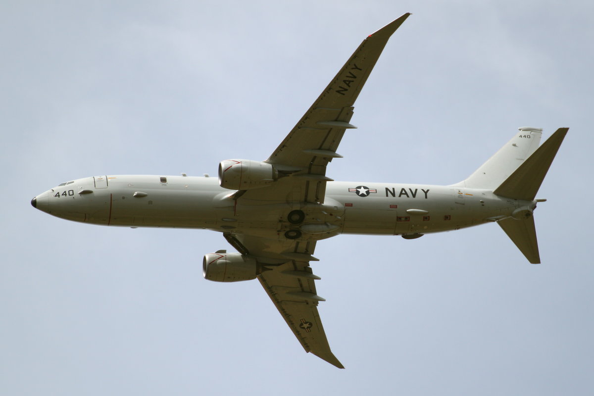 Boeing P-8A Poseidon, #168440/440, der US Navy im Überflug in Geilenkirchen (GKE/ETNG) am 30.06.2017.
