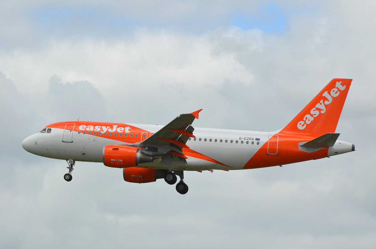 Der Easyjet Airbus A319 G-EZDX vor der Landung in Hamburg Fuhlsbüttel Helmut Schmidt am 04.07.17