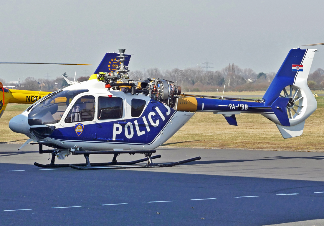 EC 135P-2, 9A-HBB der "Croatia Police" zur Wartung vor der ADAC-Werft in EDKB - 13.03.2017