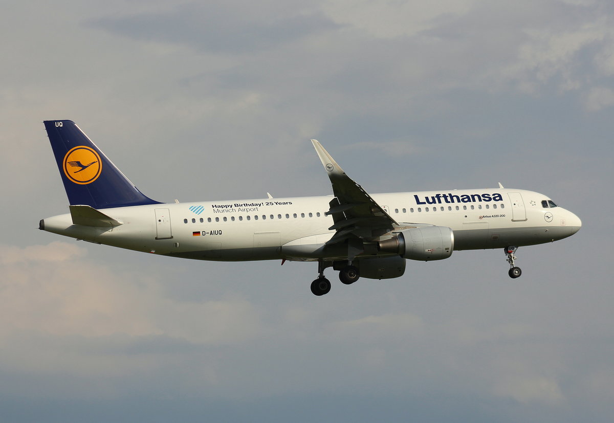 Lufthansa, D-AIUQ,MSN 6947, Airbus A 320-214(SL), 03.07.2017, HAM-EDDH, Hamburg, Germany (Sticker: Happy Brithay! 25Years Munich Airport),