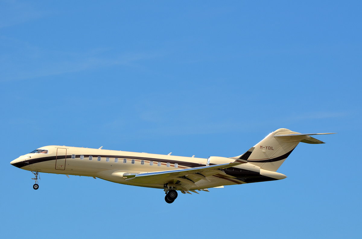 Private Bombardier BD-700-1A10 Global 6000 M-YOIL im Anflug auf den Airport Hamburg Helmut Schmidt am 06.07.17